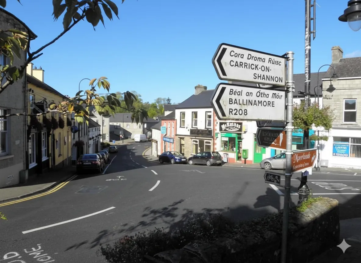 Continue through Drumshanbo, a vibrant town known for its music and cultural heritage.